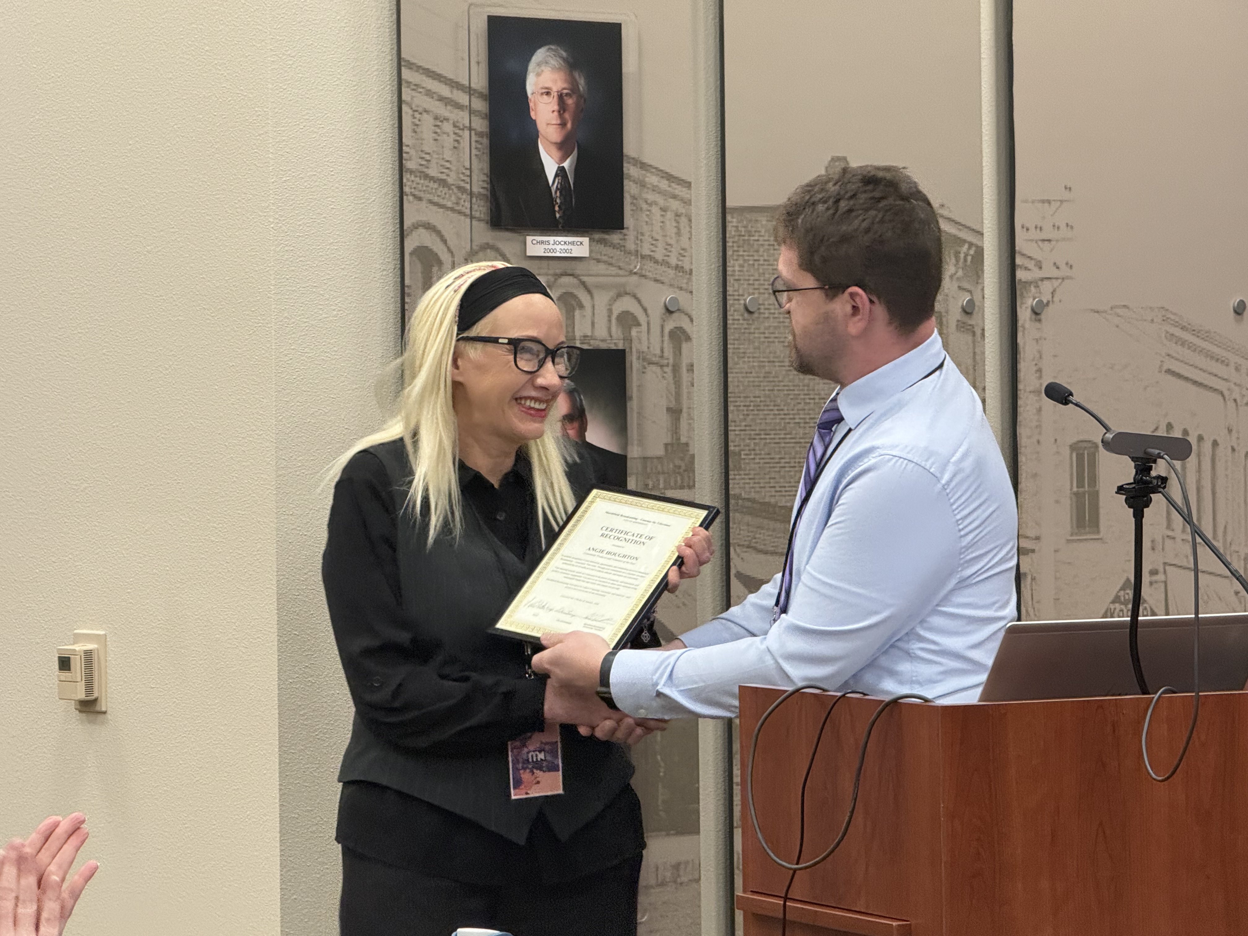 By David Ballerstein - Marshfield Now! Marshfield, WI — January 27, 2026 — The City of Marshfield and Marshfield Broadcasting – Community Television proudly recognized Angie Houghton as the Community Producer and Volunt…
